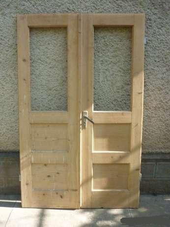 Комплект дверних полотен. Матеріал - сосна. Розміри 193-120 см.(в парі). 2 полотна під скло із замком з ключем та петлями. Не були у монтажі. |