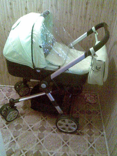 каляска салатового кольору.термо люлька из матрасом 2шт.дощовика.москитна ситка смука |