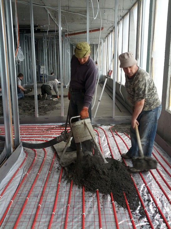 ТзОВ «ДРАЙБУД» (Львівська область Городоцький район селоКерниця) проводить роботи з влаштування напівсухих цементно-піщаних стяжок під чистове покриття (ковралін, плитку, паркет, ламінат і т.д). Стяжка великої міцності (до200 МПа) і ідеальної рівності. Стяжка виконується із «напівсухого» рощину за допомогою спеціального обладнання з використання поліпропіленової фібри яка використовується для запобігання виникнення мікротріщин під час схвачування цементно-піщаної суміші. Рекомендовани товщина напівсухої стяжки - 40-60 мм. При виготовленні напівсухої цементно-піщаної стяжки на значних площах з ціллю запобігання тріщин нарізаються деформаційні щілини.