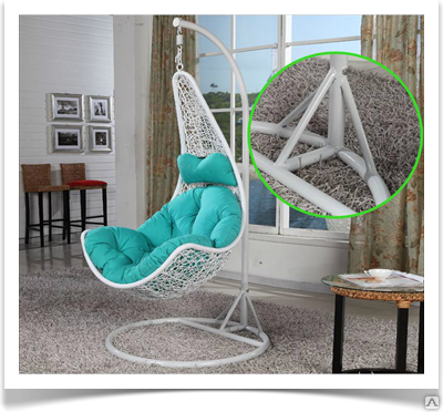 Качели, выполненые в плетении "паутинка" - на металлическом каркасе, что обеспечивает большую устойчивость и надежность и выдерживают нагрузку до 110 кг (пр-во Украина).