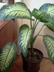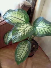Диффенбахия - вечнозеленый кустарник с прямым, крепким, зеленым стеблем. Крупные, широкие, с изумительным рисунком из светло- и желто-зеленных пятен, крапинок или полос листья являются отличительной чертой рода диффенбахия. Великолепие окраски листьев и удивительная симметричность формы листовой пластинки этого представителя семейства ароидных не имеют себе равных во всем растительном мире. Даже в пасмурный день оно создаст ощущение света и тепла.