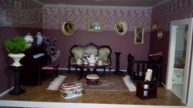 - кровать с постельным бельем и матрасом, покрывало и две подушки, длина 19 см, ширина13 см,выс8 см - 60 грн