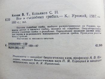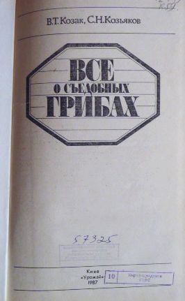 Всё о съедобных грибах. Авторы: Козак В.Т., Козьяков С.Н. Лот 2.