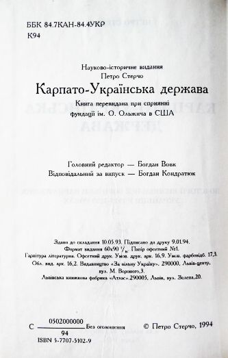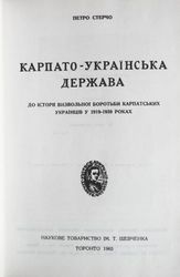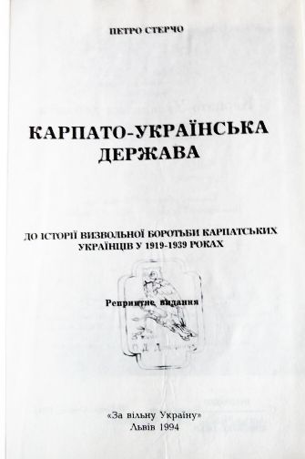 Петро Стерчо. Карпато-Українська держава (науково-історичне видання)