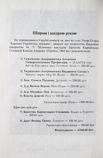 Свою працю автор присвятив творцям цих подій і особливо Президентові Карпато-Української Республіки Августинові Волошину.
