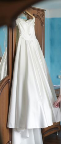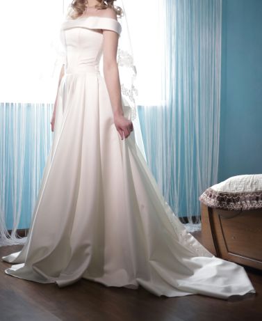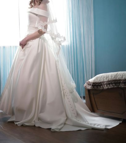 Продам свадебное платье. Сшитое под заказ в киевском свадебном салоне"Юлия Брайд".Размер s-m,на рост 165-170.Ткань-плотный атлас,на всю юбку сзади жемчужные пуговицы,плечи открыты.Размер корсета регулируется шнуровкой.Платье в идеальном состоянии,после химчистки.За дополнительными деталями и фото,пишите в Viber |