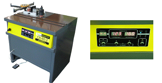 Управление автоматической подачей и обрезкой кромки осуществляется при помощи педали (для криволинейных деталей), либо при помощи концевого выключателя (для прямолинейных деталей). Автоматическая подача кромки в сочетании с низкотемпературным клеем дает возможность качественно наклеить кромку ПВХ толщиной 0.4 мм. В станке предусмотрена защита от пуска двигателя при неразогретом клее. Станок не требует подключения компрессора.